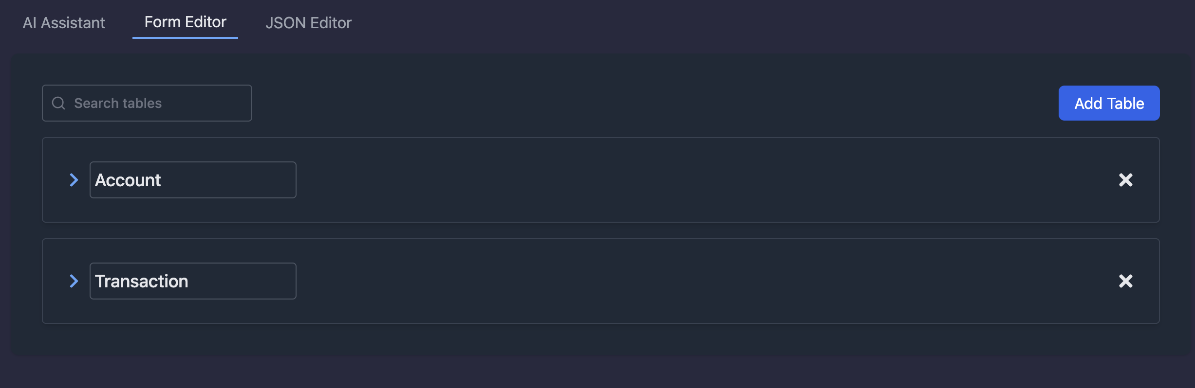 You open tables in the Form Editor to make changes to the schema.